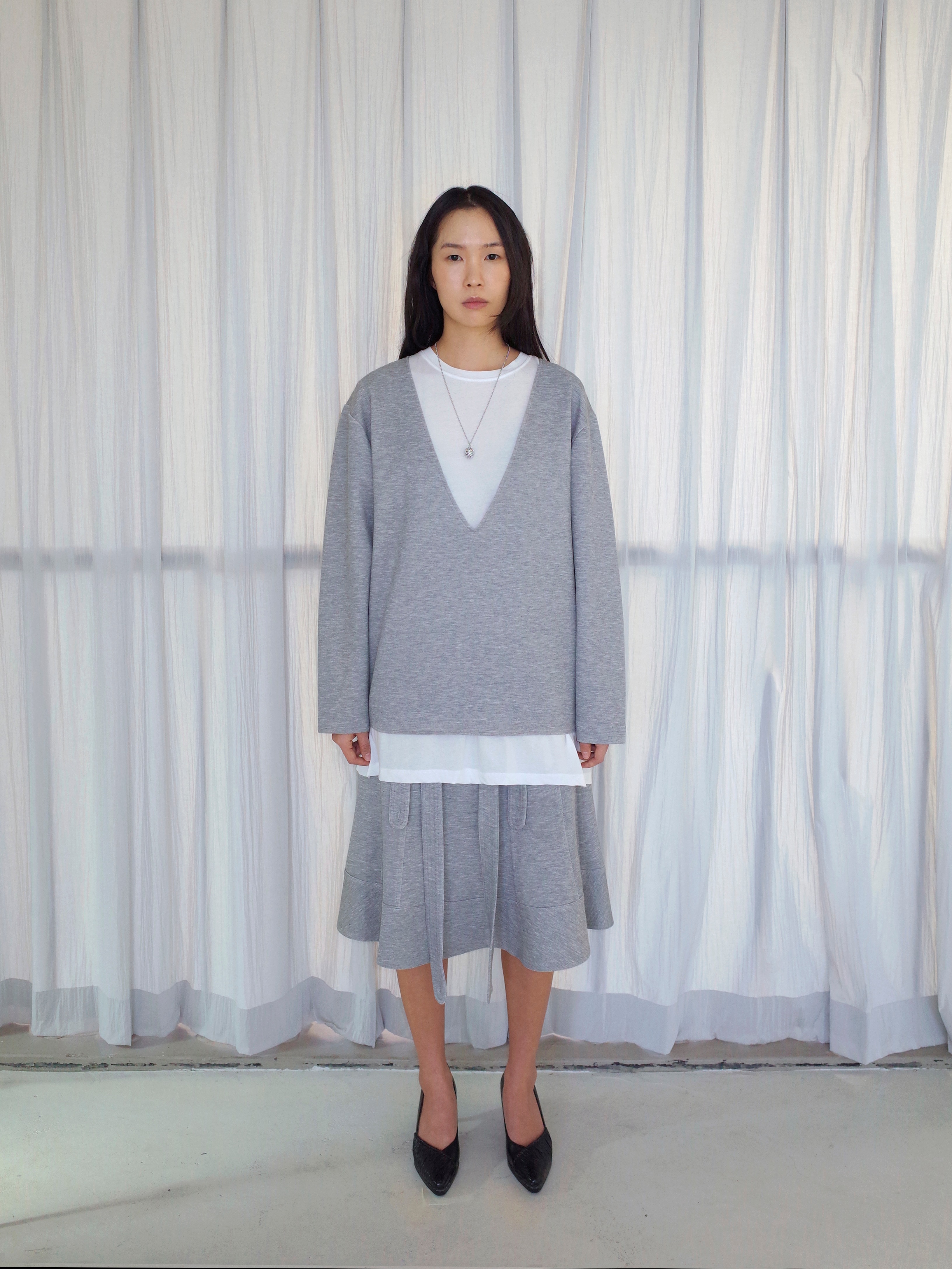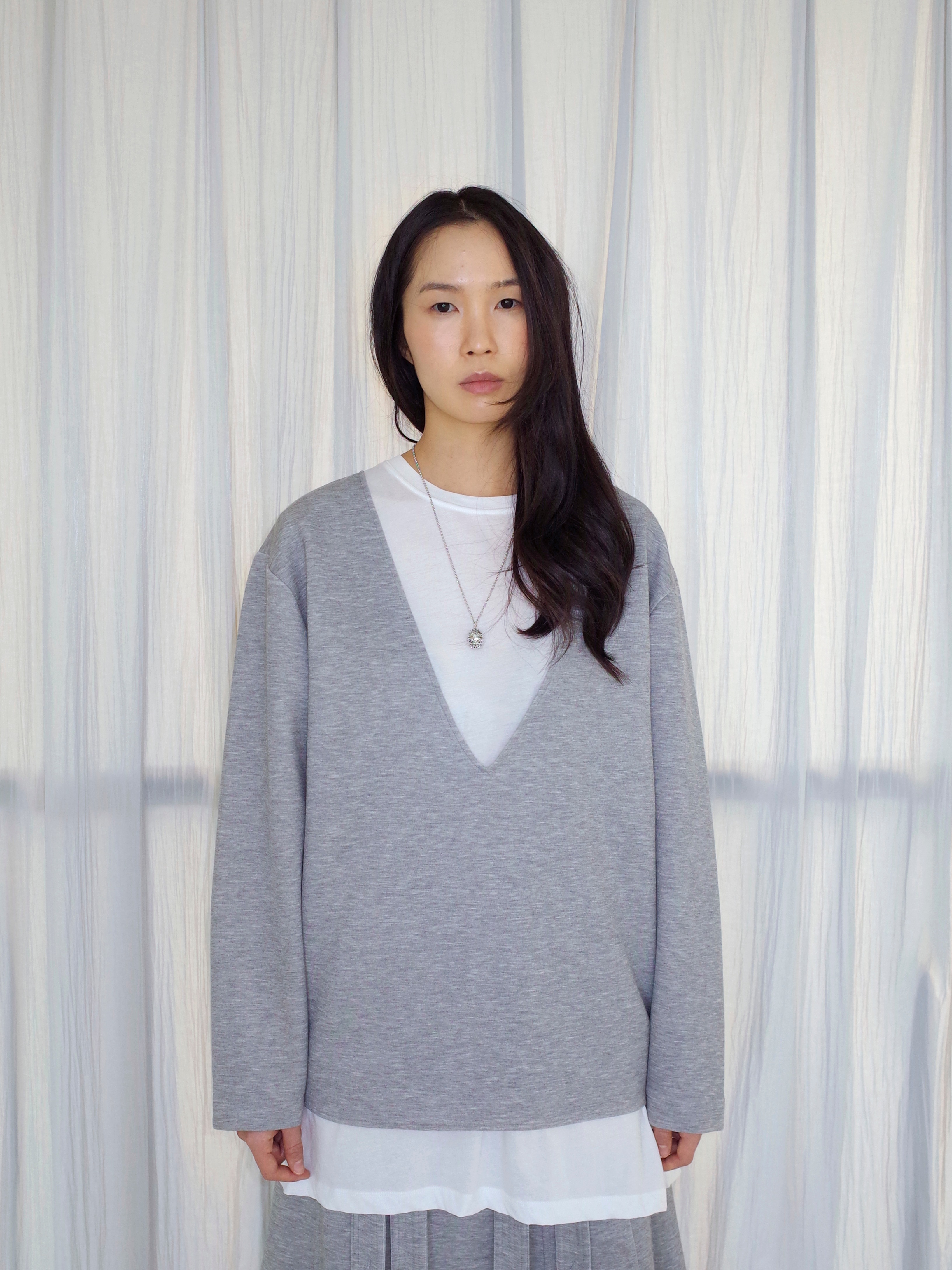 - size length(총장) 26.5 /chest(가슴) 23.5 / shoulder(어깨) 19.5 / armhole(암홀) 8 / sleeve(팔길이) 23