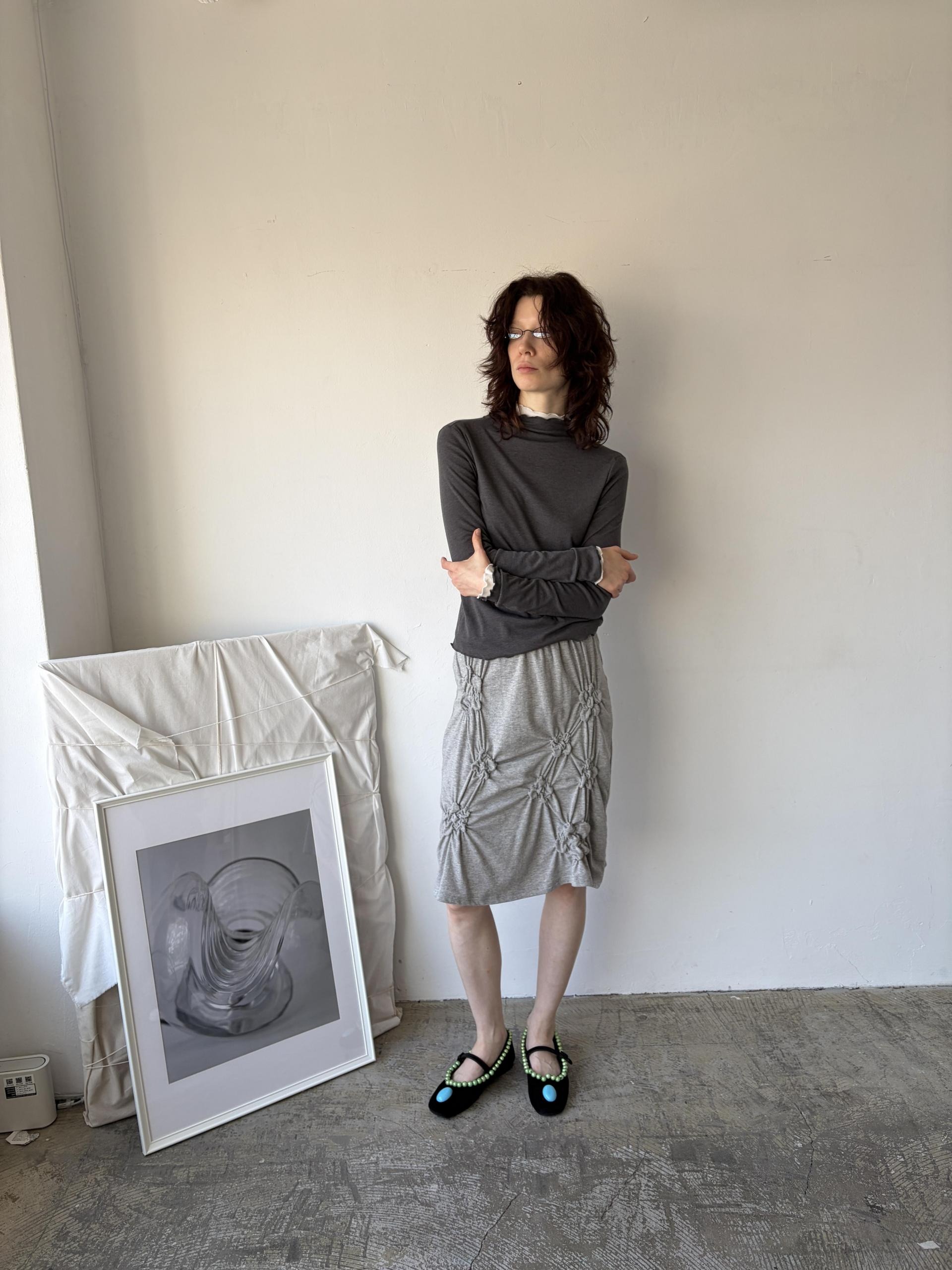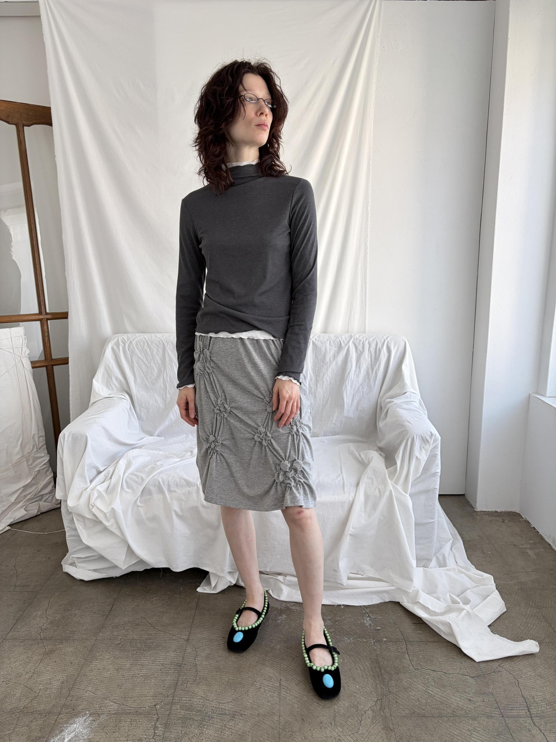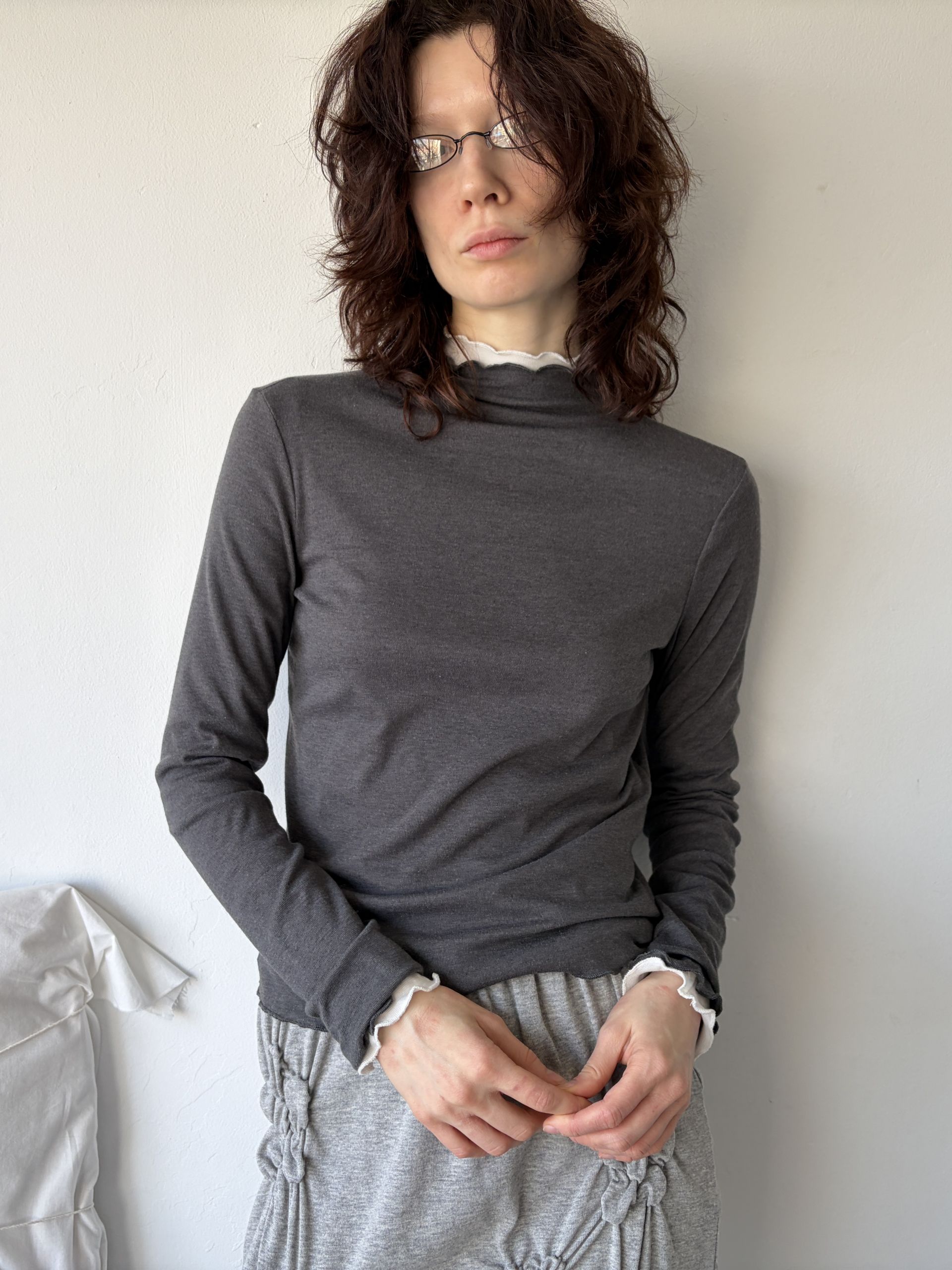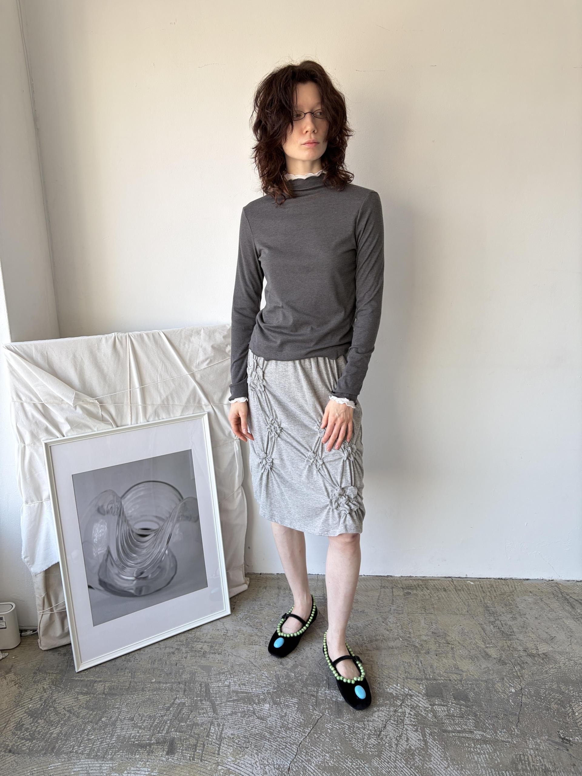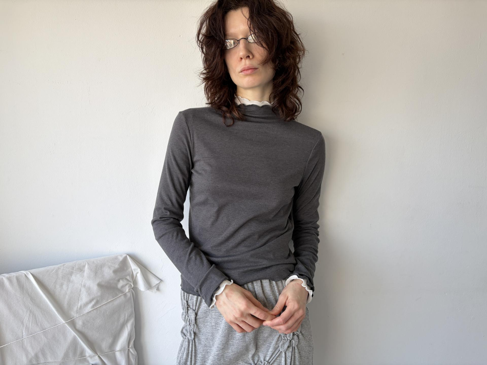 - size length(총장) 23 /chest(가슴) 16 / shoulder(어깨) 15 / armhole(암홀) 8 / sleeve(팔길이) 24.5