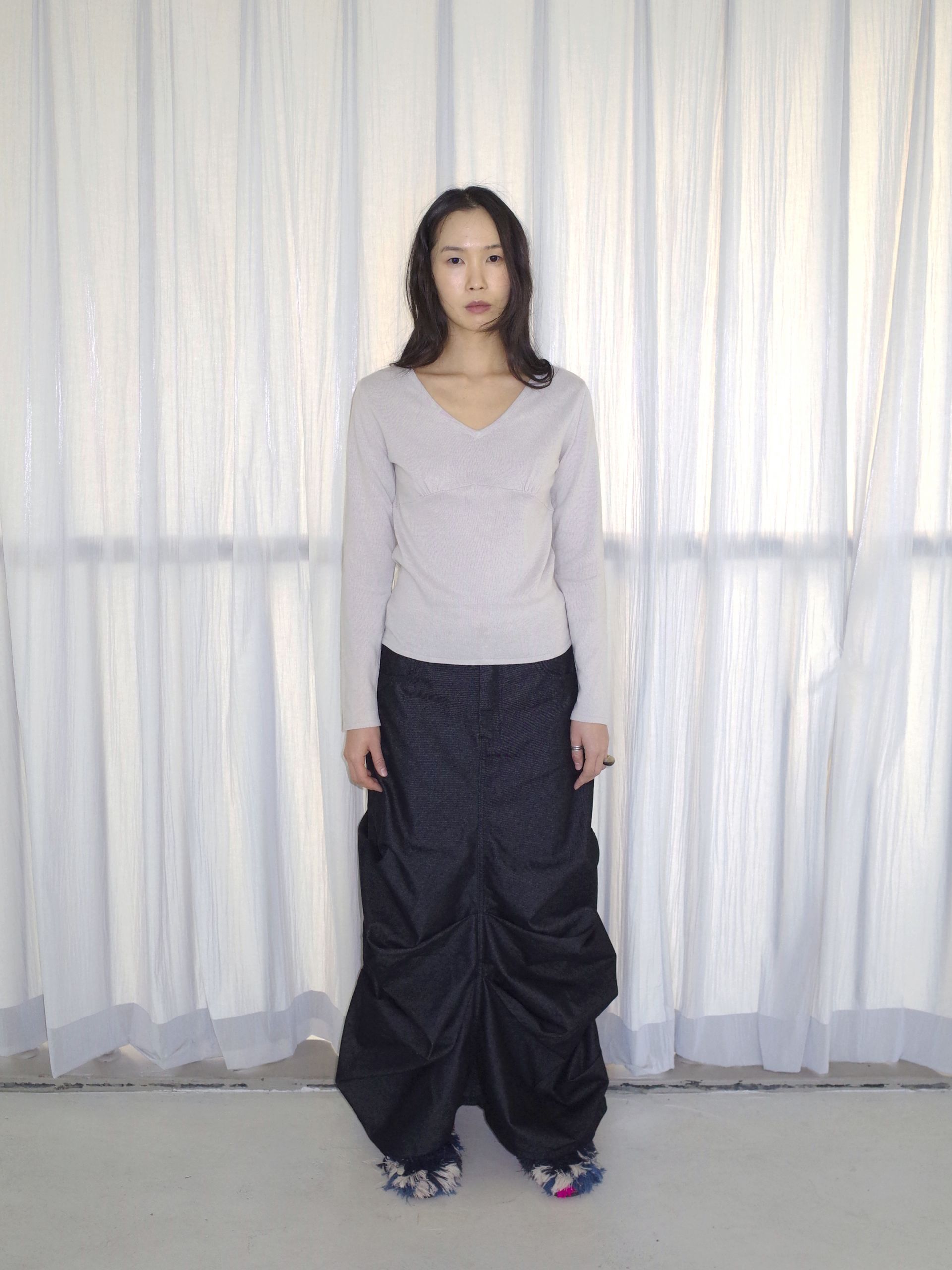 - size s: length(총장) 37 / waist(허리) 27 / hip(엉덩이) 21 / hem(밑단) 31.5