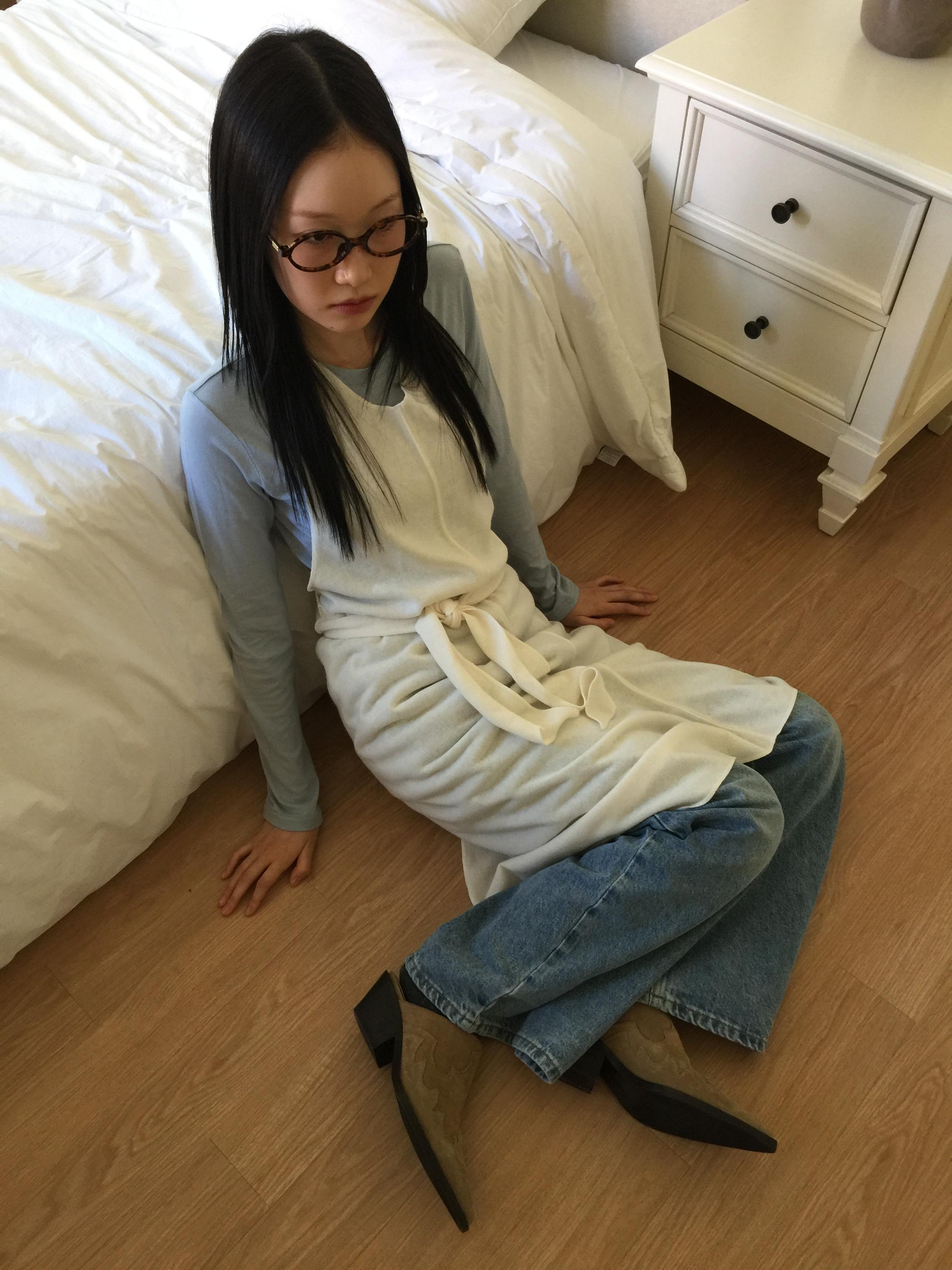 허리쪽에 끈이 있어 모든 사이즈가 착용이 가능한 아이템으로 페미닌 스타일로 연출 가능합니다.
