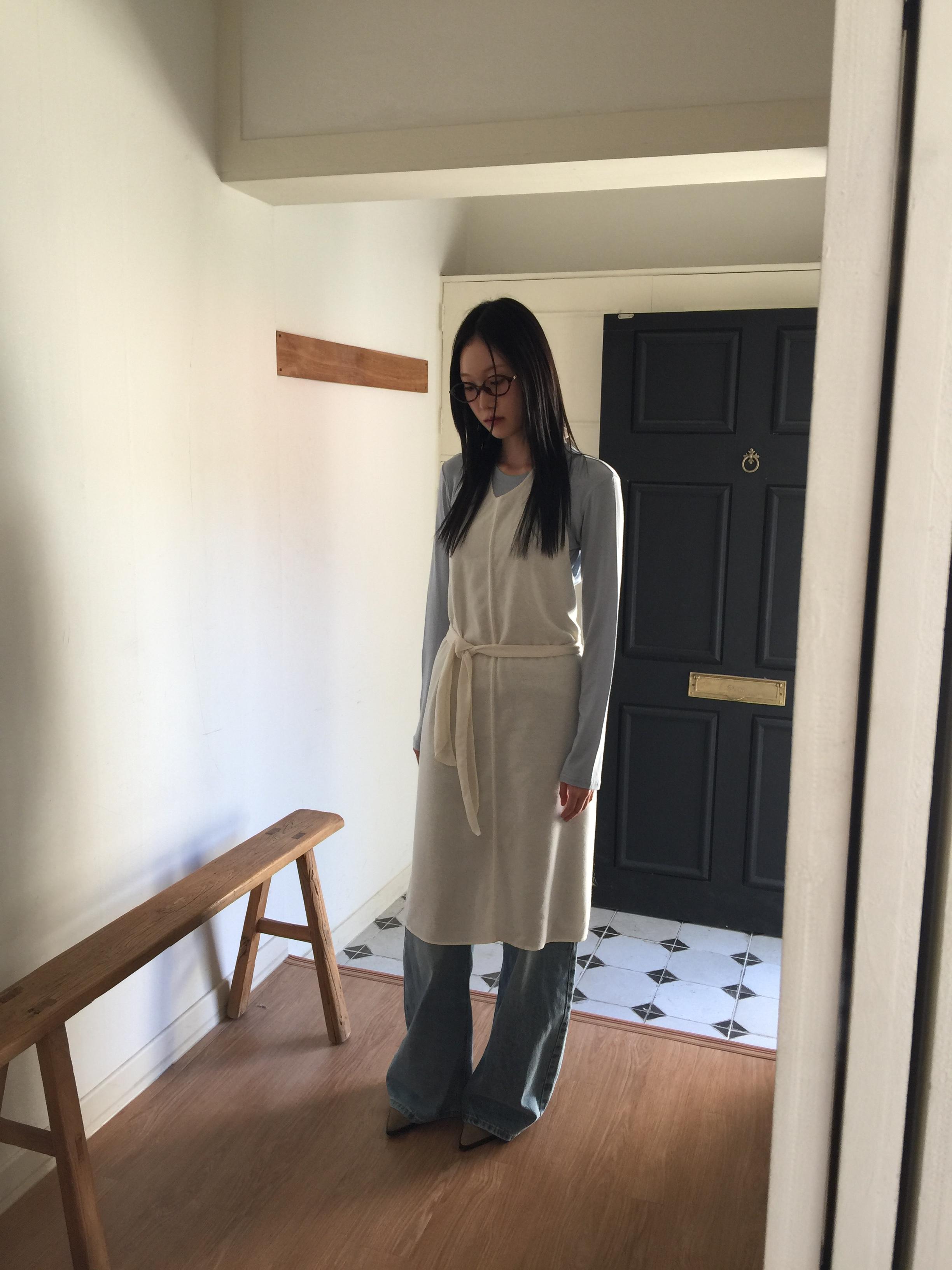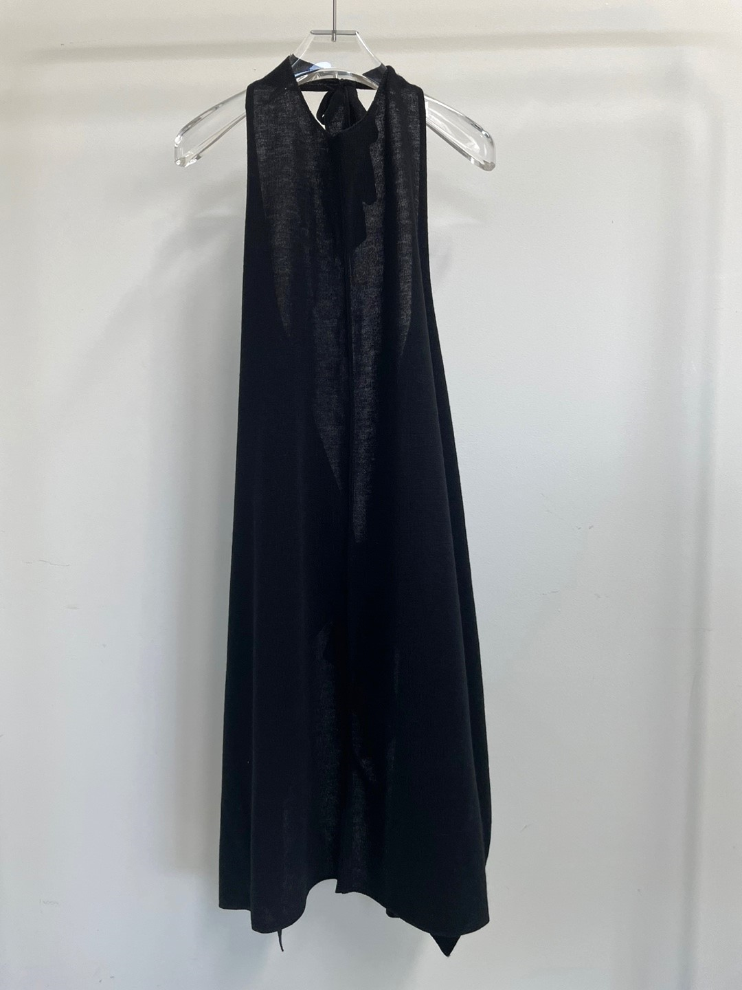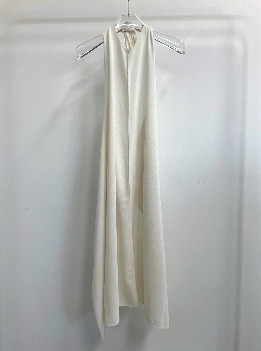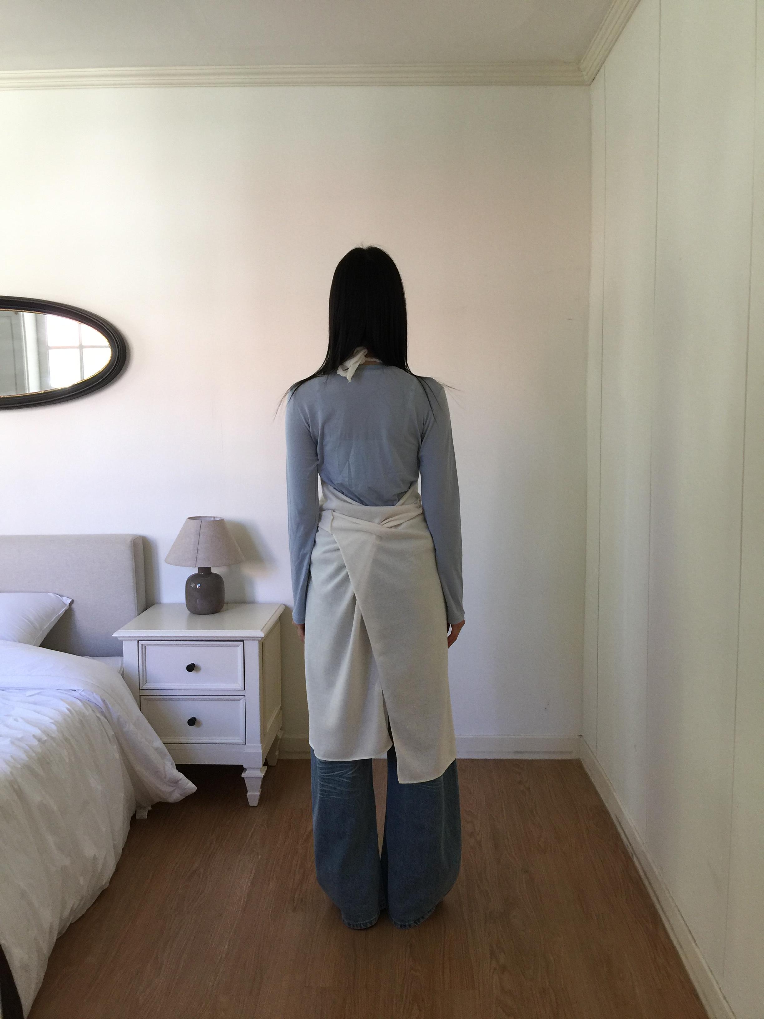 백 오픈 형태의 홀터넥 디테일이 특징으로 넥 끈으로 길이를 조절하여