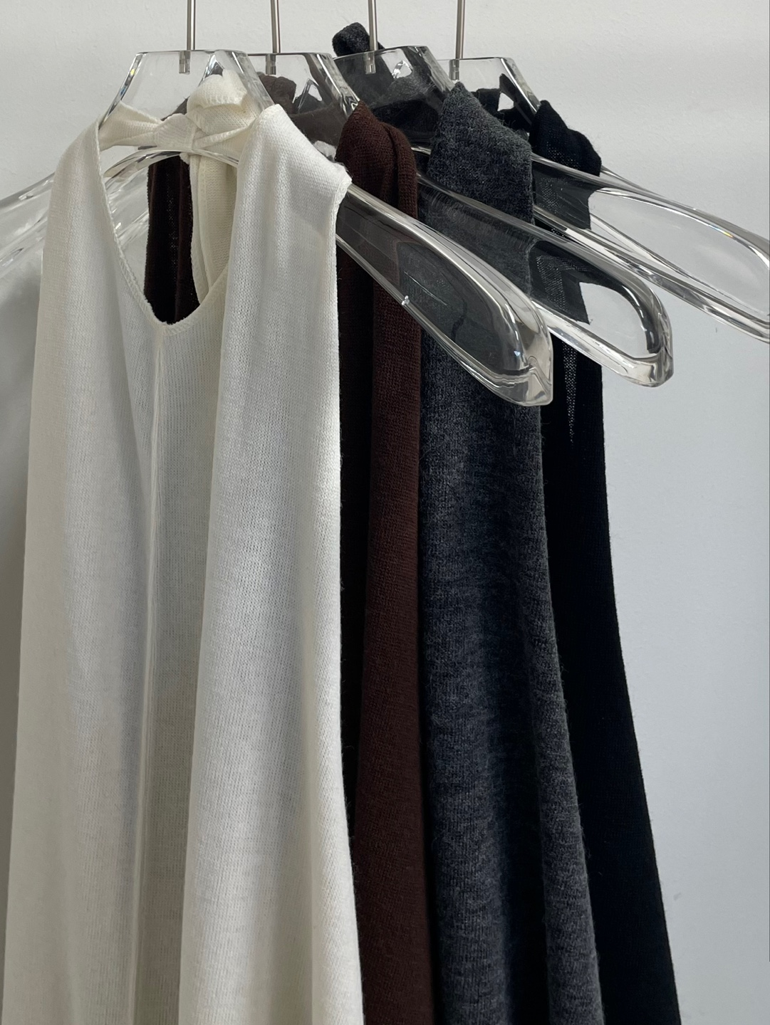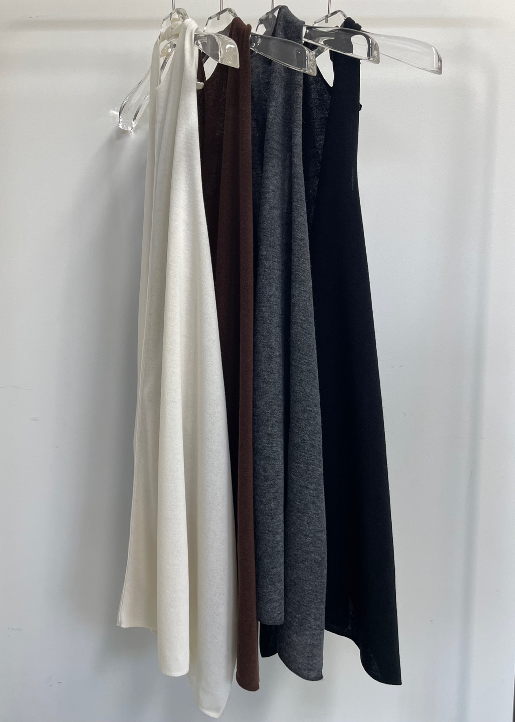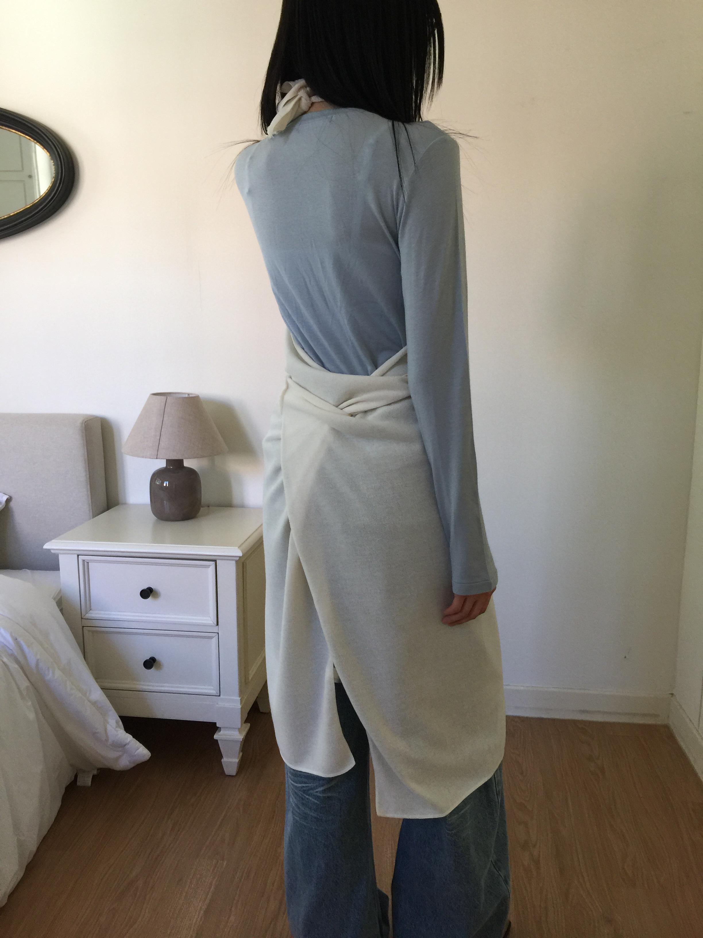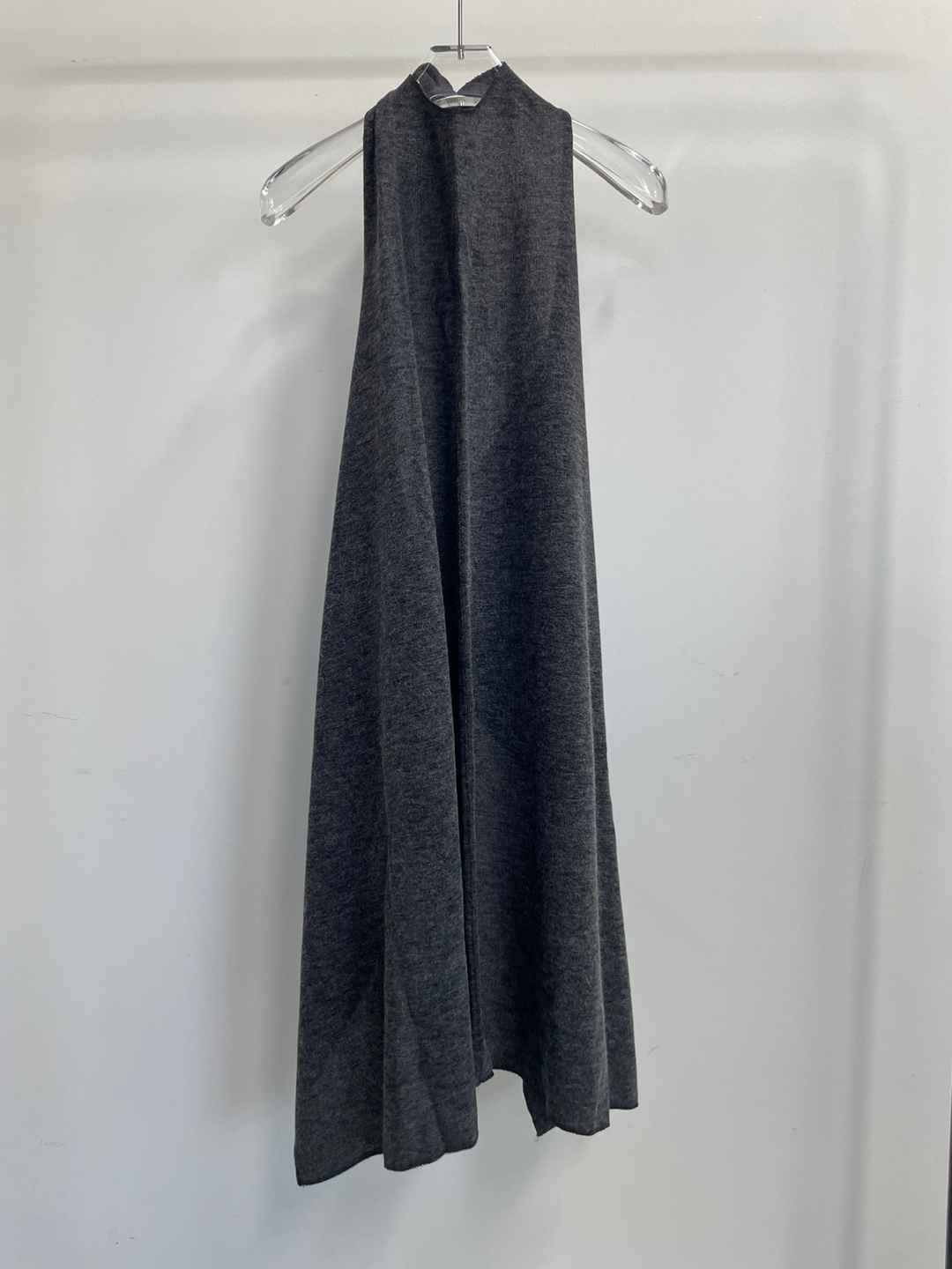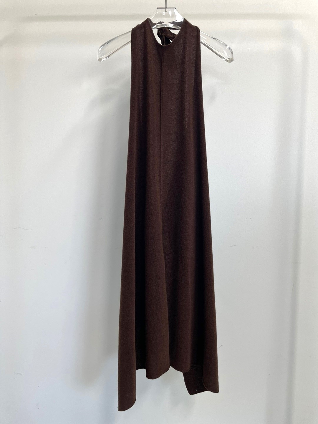 백 오픈 형태의 홀터넥 디테일이 특징으로 넥 끈으로 길이를 조절하여